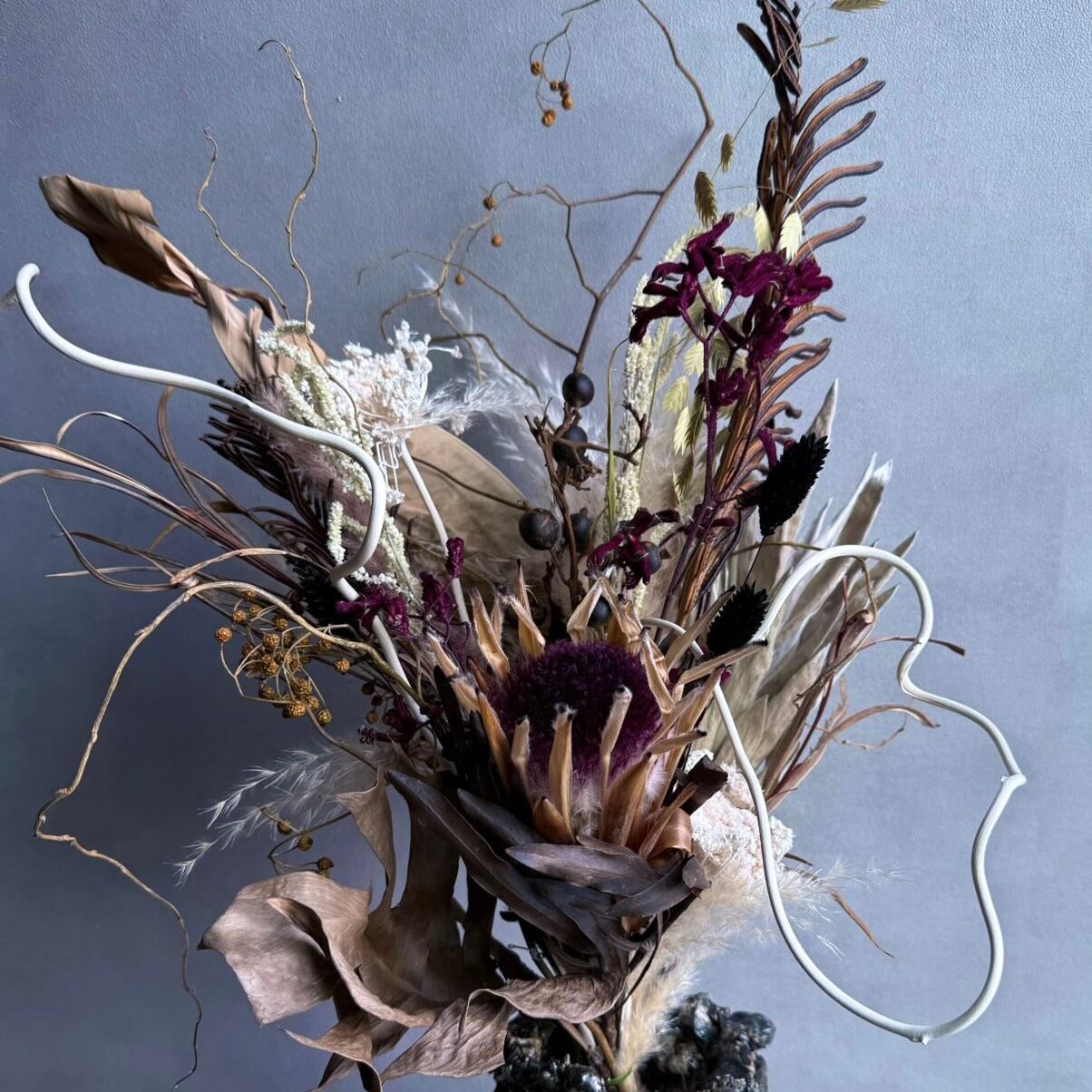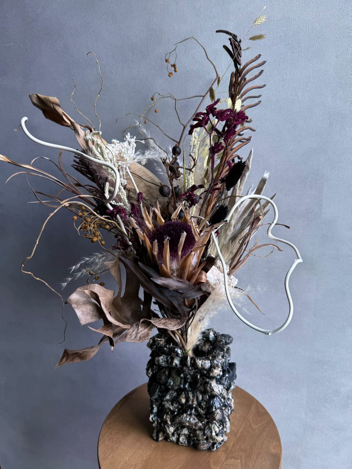 ドライフラワーを美しさを引き立てる、フラワーベースです。