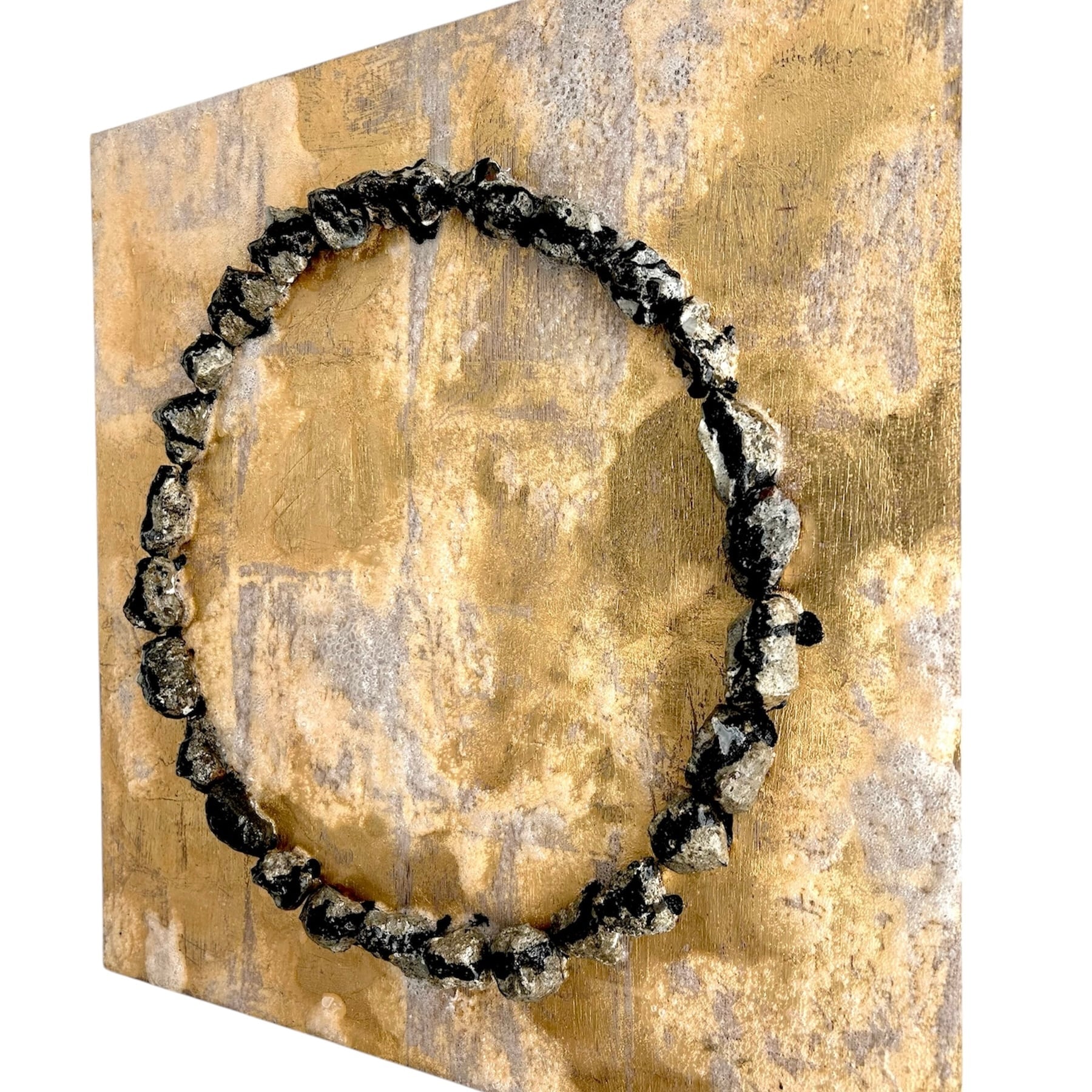 この作品では、解体された建築物から生まれたコンクリートガラを素材として用い、その断片を円相として再構成しました。
