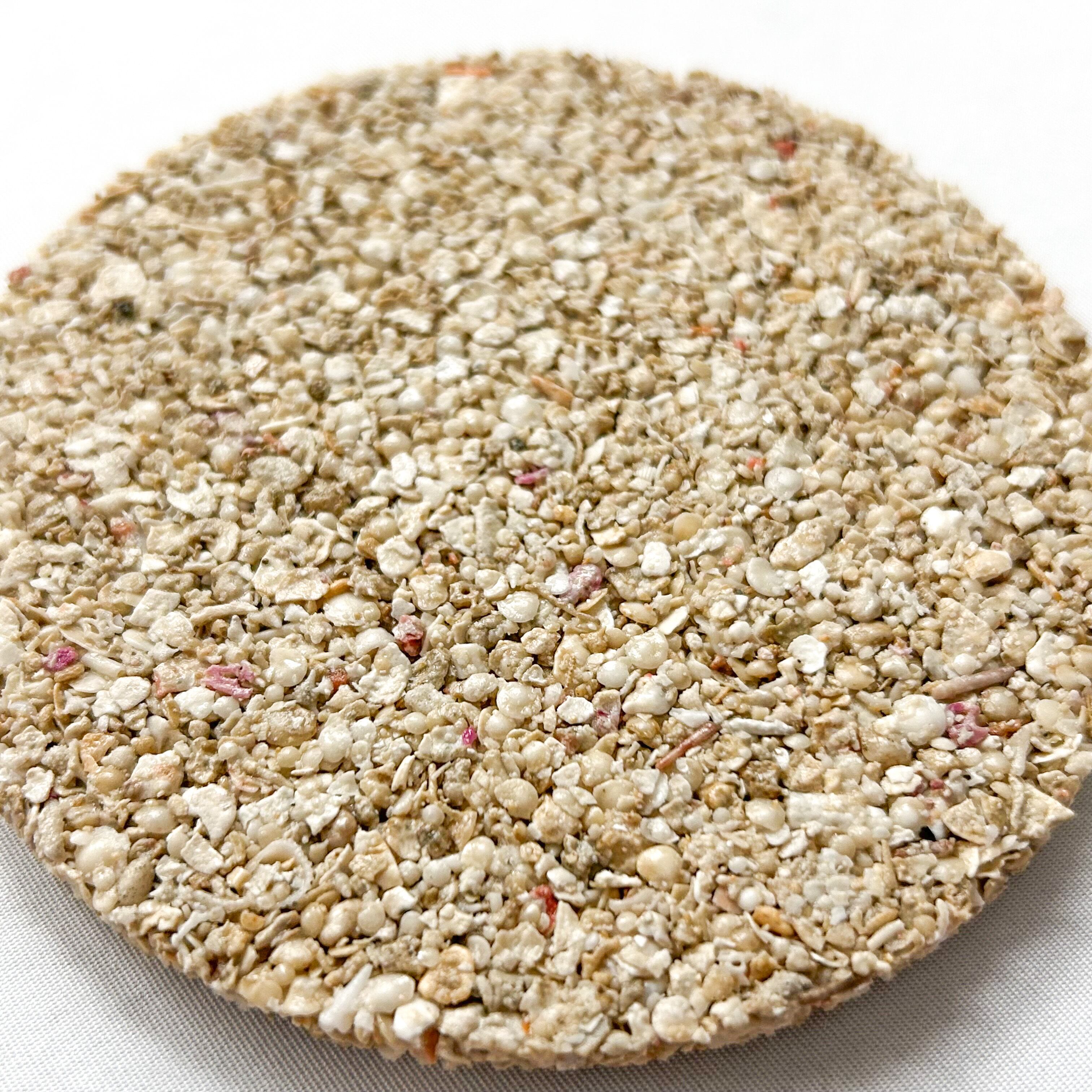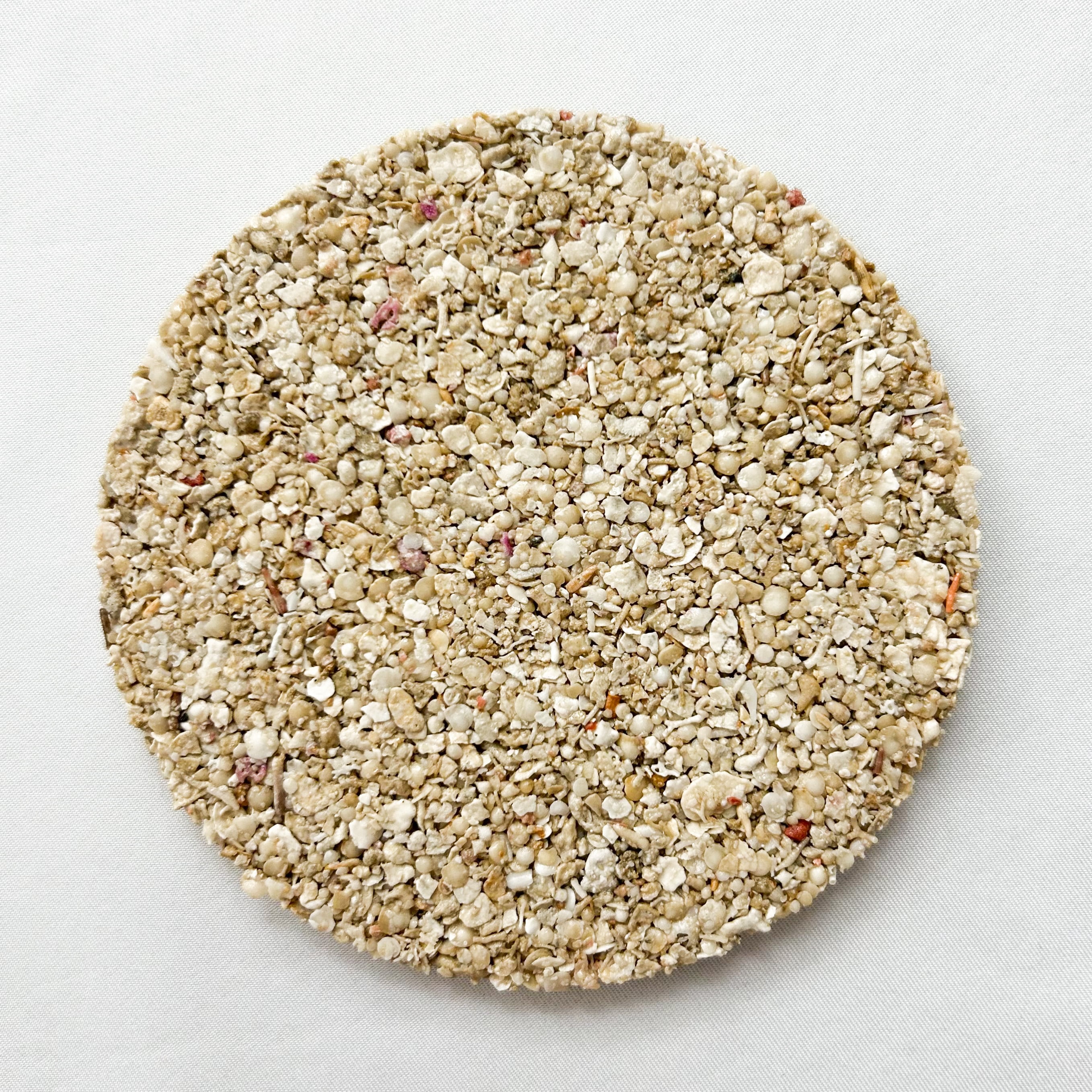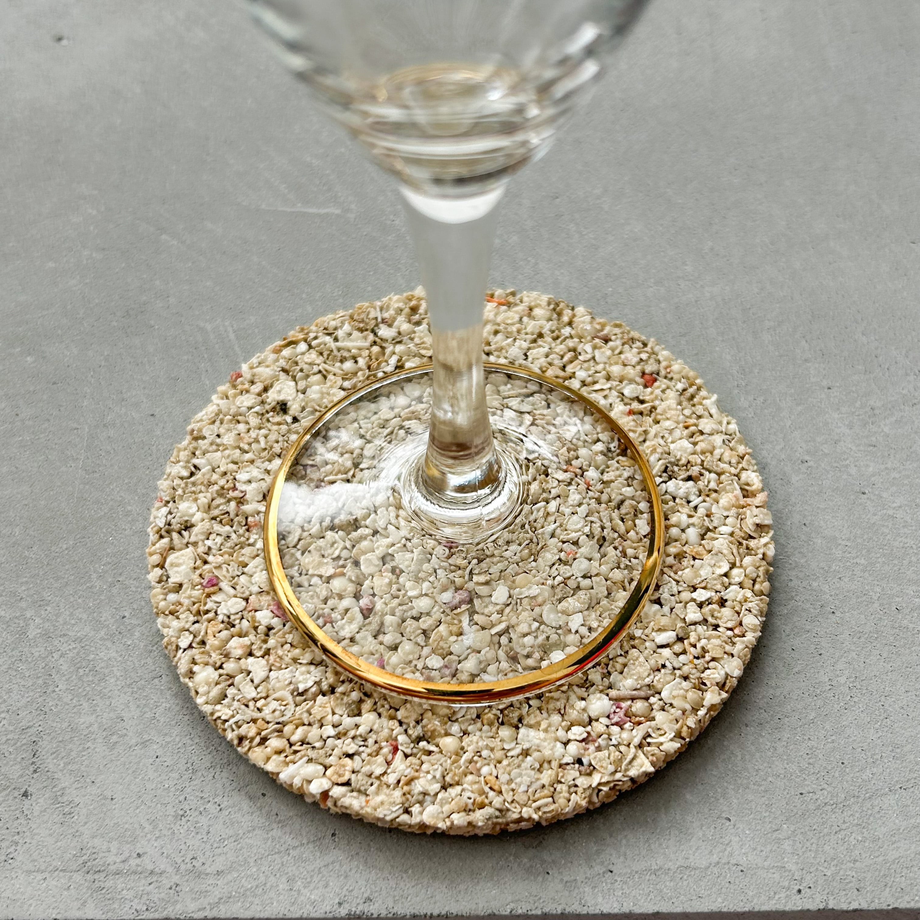 沖縄の自然が育んだサンゴ砂と琉球石灰岩を用いて作られています。美しい砂浜のようなテクスチャーと、沖縄の豊かな海の恵みを感じられるコースターです。ダイニングテーブルを彩るアクセントとしてお楽しみいただけます。