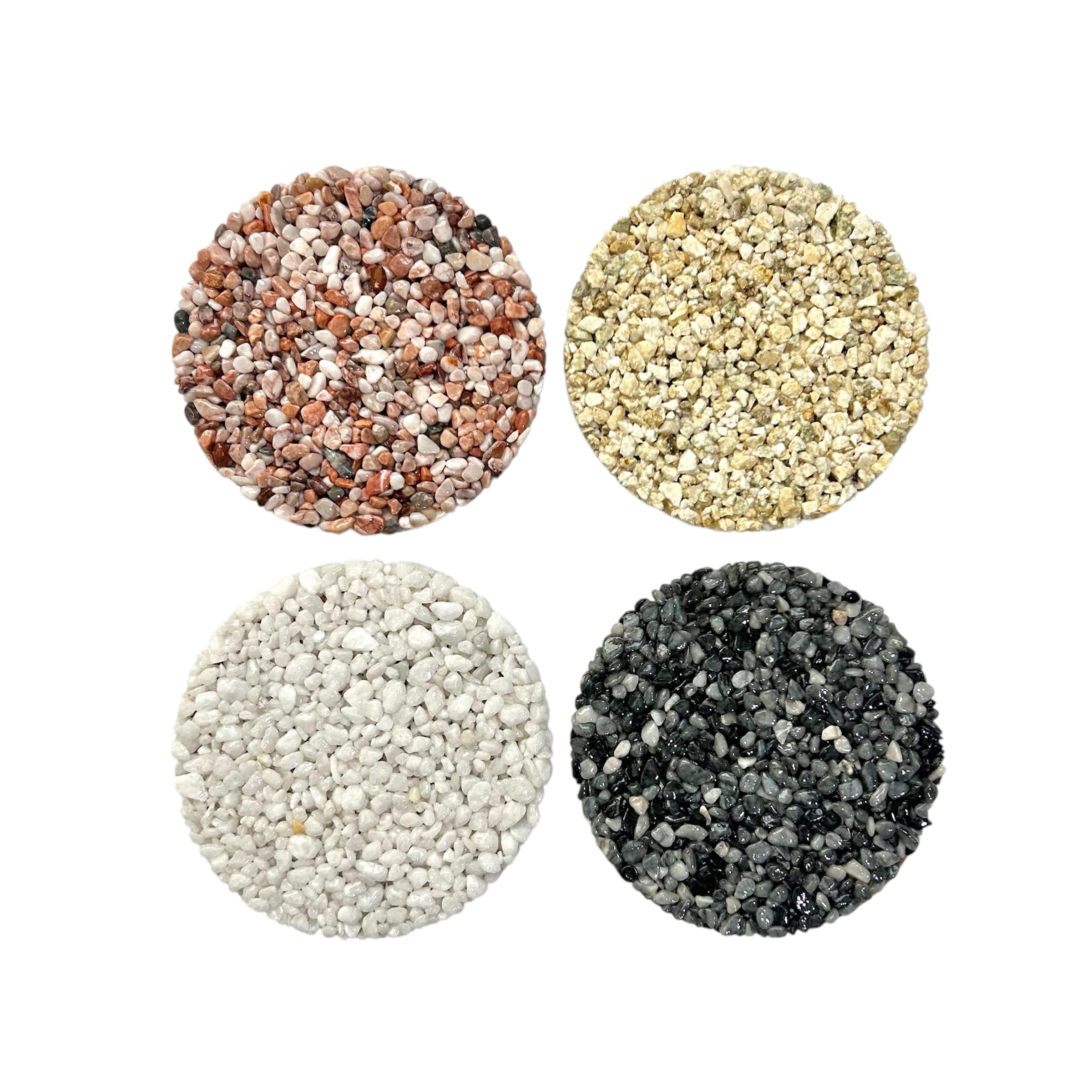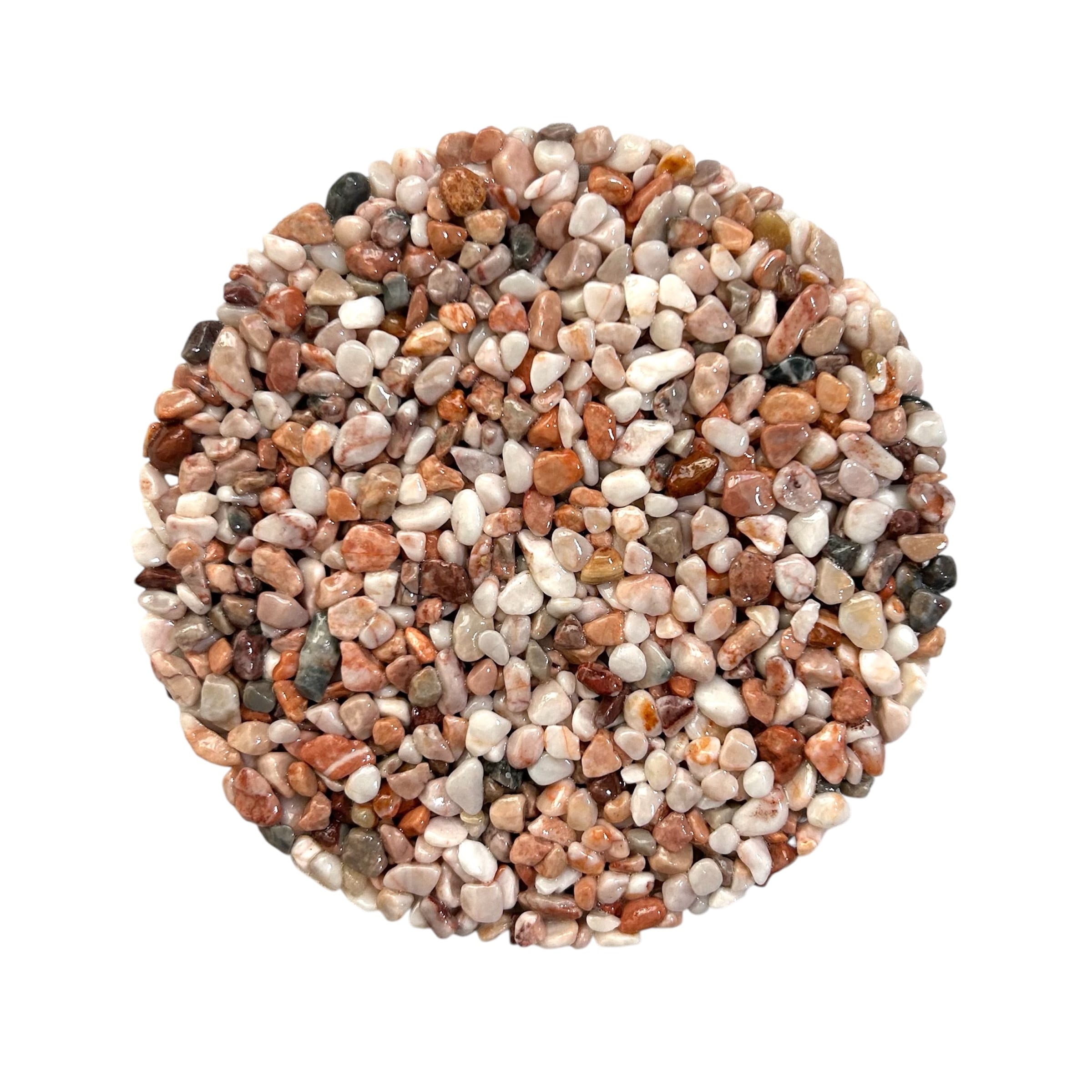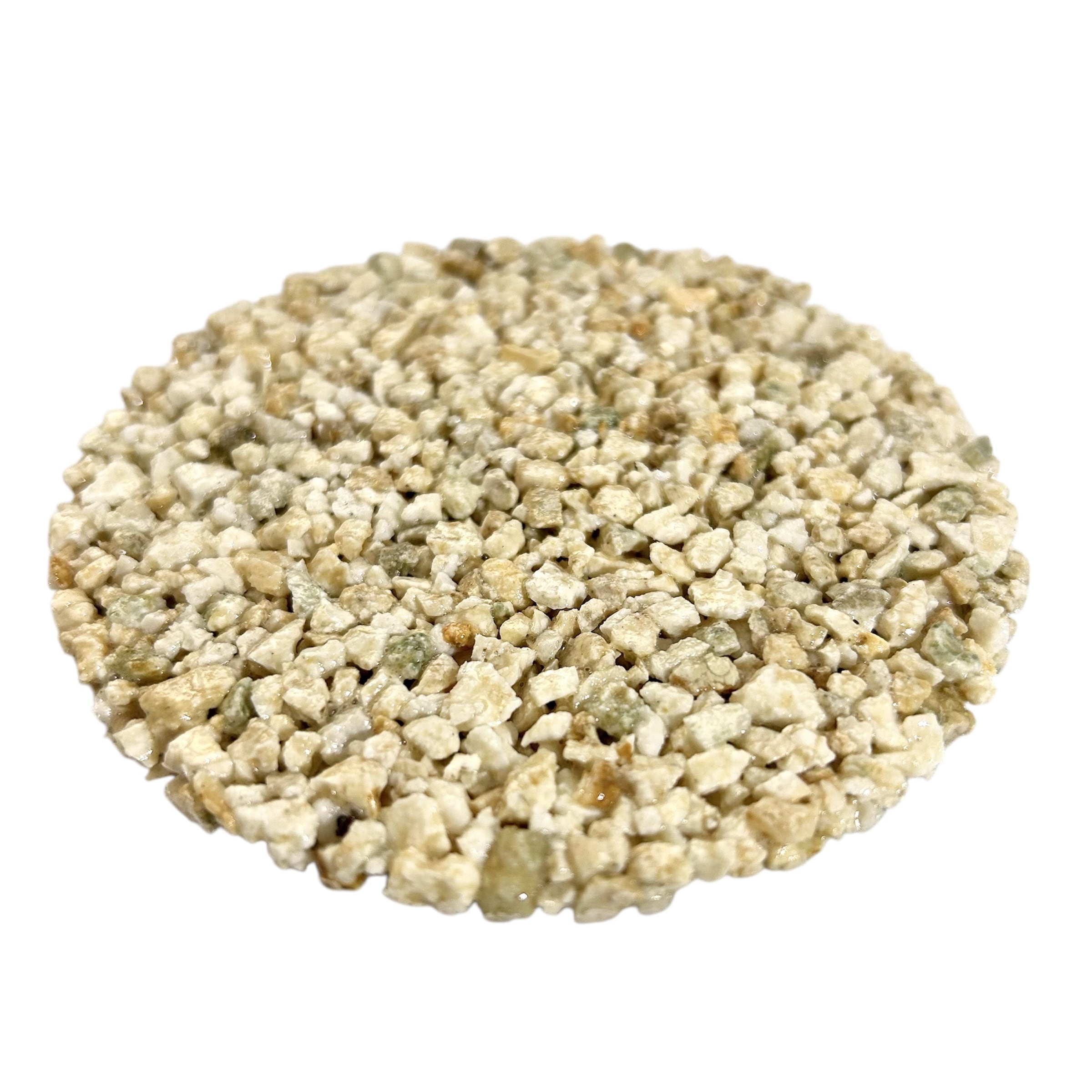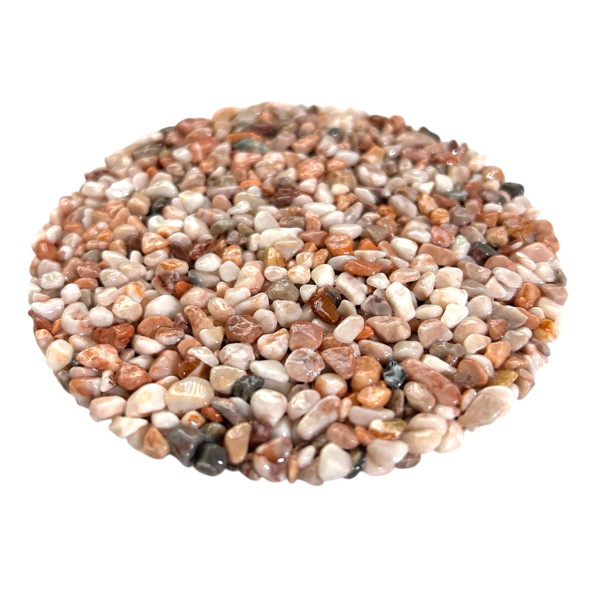 色とりどりの細かな天然石をぎゅっと固めて、自然そのものの美しさを活かしたコースター。石の個性がひとつひとつ異なるため、同じものは世界に二つとありません。